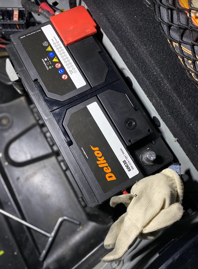 혹시나 교체 이전에 전압을 측정해 봤는데, 시동 전 12V, 시동 후 1분 이내 13V로 충전되는 것 보면 배터리 상태가 그리 나쁜 것 같지는 않았습니다. 배터리 위쪽에도 보면 녹색으로 양호하다는 표시가 있었지만, 다른 기능의 전력 부족 의심이 있었고, 만 3년이 지난 제품이기에 미련없이 교체하기로 결정 했습니다.