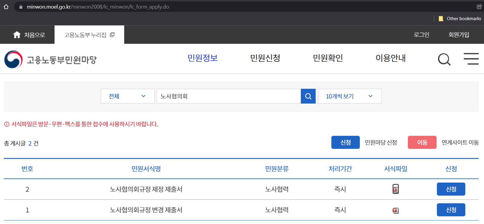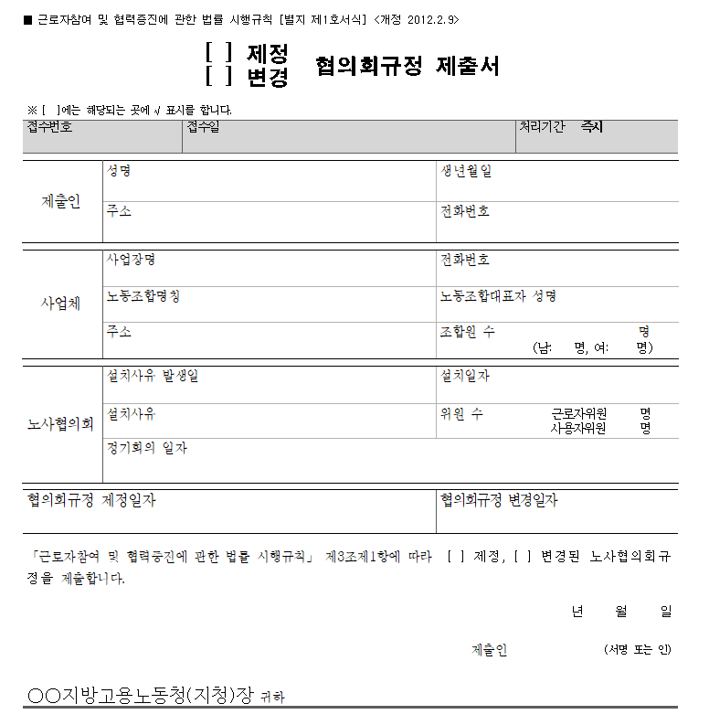 등록 시에는 제정된 노사협의회규정과 함께 제출하면 모든 신고가 완료 됩니다.