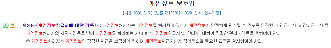 개인정보보호교육에는 그나마 빈도/시간에 대한 규정도 없으며, 정기적으로 시행해야 한다고 규정하고 있습니다.