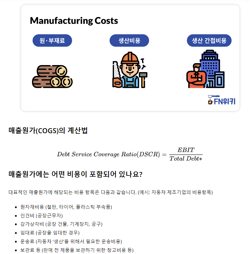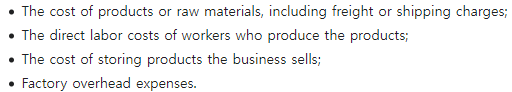 Cost of Good Sold 의 줄임말로, 매출원가로 해석합니다. 회계에서도 복잡한 개념 중 하나이나, 위 인건비 수립과 유사하게 HR에서도 주로 듣고 이해애야 하는 개념 중 하나 입니다. 아래 참조 스크린샷을 보시면, 영문과 한글 둘 다 HR 관련 중요한 항목을 포함하는 것을 확인할 수 있습니다.