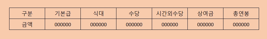 이러한 기본급의 내역은 추후 급여명세서에 명시되어야 하는 내역들 입니다. (식대 지원이 없다면 제외)