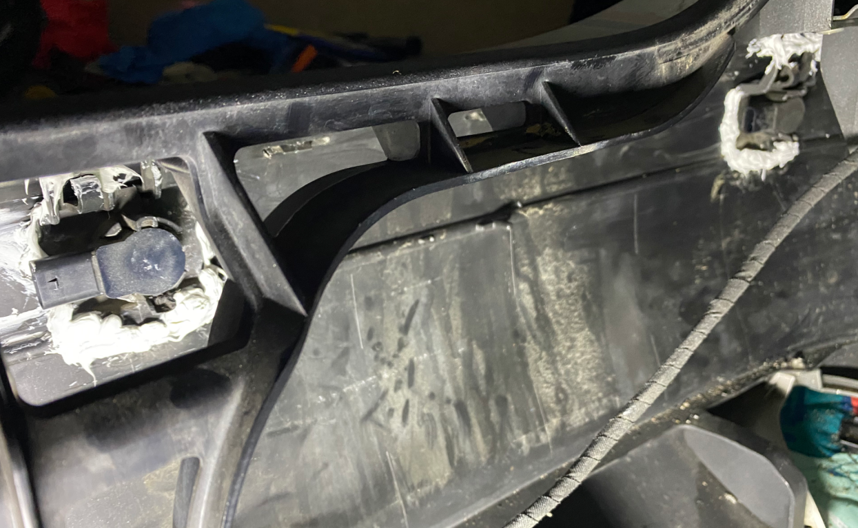 기존의 실리콘이 결합부가 결합부 뒤쪽으로만 되어 있어서, 센서 방향과 범퍼가 부착되는 부분에 특히나 많은 실리콘을 쐈는데, 이것이 추후 실리콘 마르는 시간을 고려하지 않은 패착이었습니다.