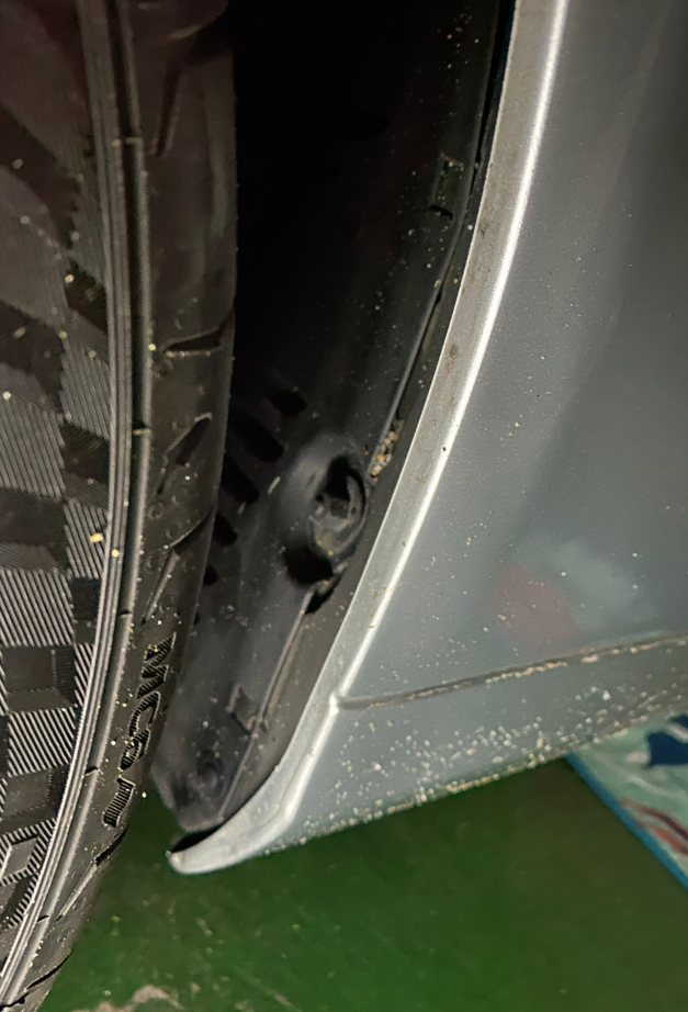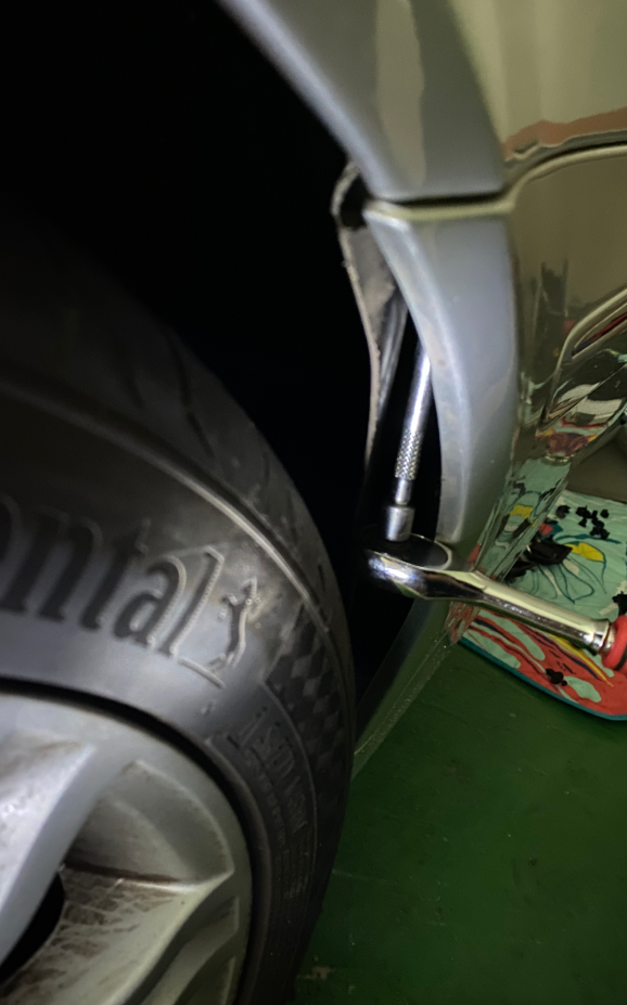 이후, 뒤쪽 타이어에서 리어범퍼 쪽으로, 커버를 열어보면, 범퍼 아래쪽에서 위쪽으로 볼트가 보여야 하는데......저는 너트가 보입니다. 살짝 불안하면서, 손을 양쪽으로 끼워 넣어 헛돌아가는 너트를 겨우 풀어 냈습니다. (여기서 이미 지쳐 버렸습니다.)