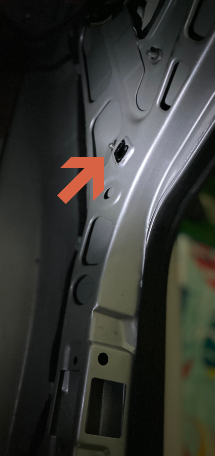 다음은 트렁크 양측의 커버를 제거 합니다. 아래의 동그란 플라스틱 핀을 제거하면 안쪽에서 리어범퍼의 결합부를 볼 수 있습니다.