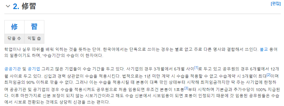 수습 기간이란, 사용자와 노동자 사이의 근로계약 체결 후, 입사일부터 일정 기간 동안 업무 환경 적응과 학습을 위해 설정하게 되는 기간 입니다. 수습 기간 동안에는 주로 업무 습득을 위한 교육이 진행되고, 보통 사수라고 불리는 팀의 상사와 함께 업무를 진행하며 배우게 됩니다.