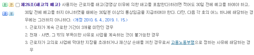 결국 3개월~6개월 수습 기간은, 추가적인 수습 평가를 통해 해고 여부를 결정한다는 의미로 운영하고 있으며, 3개월이 지난 시점 이기에 즉시 해고가 아닌 1개월 유예 기간 제공 후 해고로 협의 해고 식으로 진행하는 것입니다.