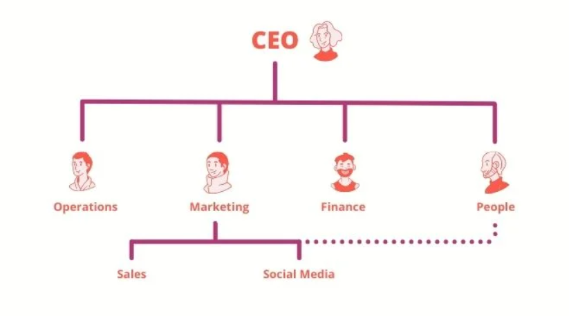 보고를 하는 대상이 있고, 팀의 리더로서 역할을 수행한다는 것은 업무 역량의 중요한 요소이며, 이는 조직도에 명확히 드러 납니다. 아래 조직도 예시로 확인해 보겠습니다.