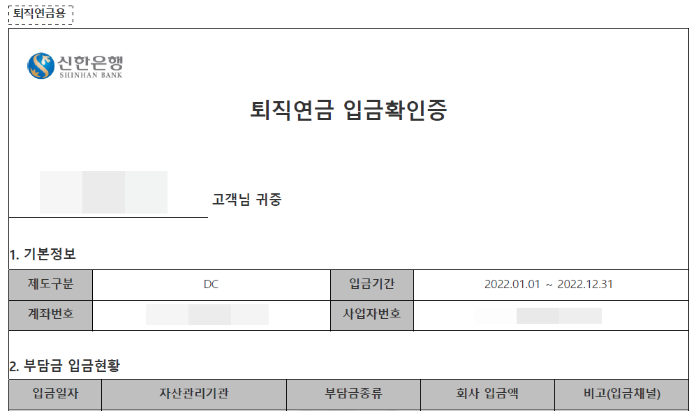 - 퇴직연금 산정이 어떻게 계산되었는지 : 계산된 내역과 지급된 은행 자료