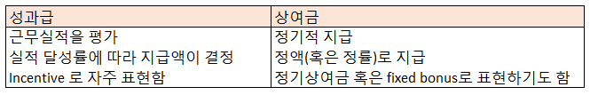 이 말이 혼동되는 이유는, 과거 우리나라에서 상여금을 성과급 형태로 지급 했기 때문입니다.