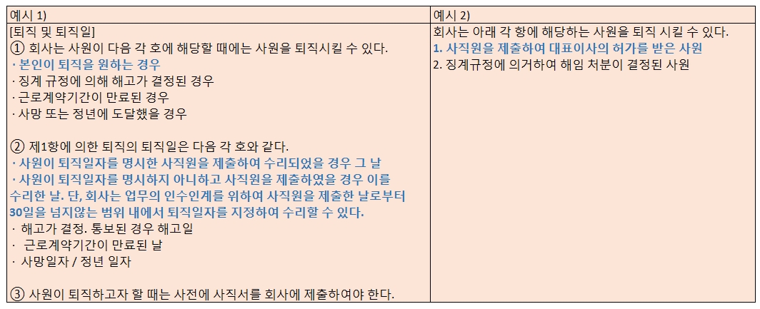 - 아래 예시의 퇴직 규정을 통해 설명 드리겠습니다.