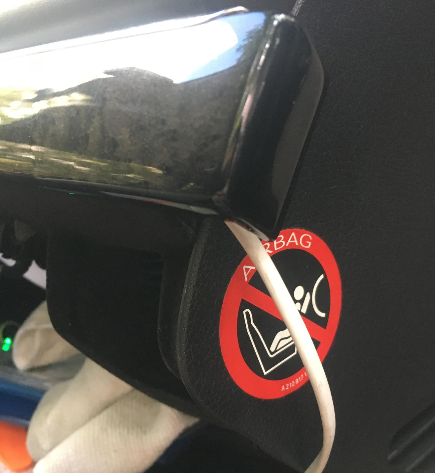 조수석 쪽 문을 열고 보면 글로브박스 위쪽으로 흰 선이 약간 보입니다.