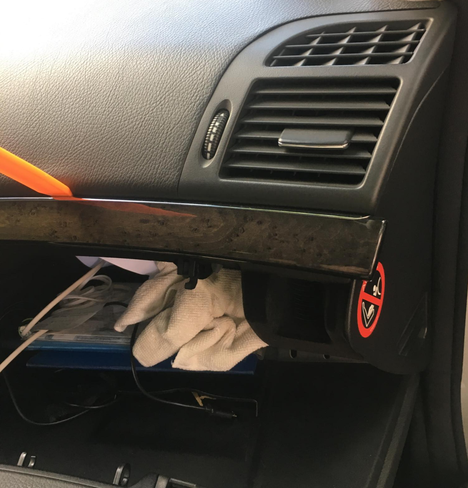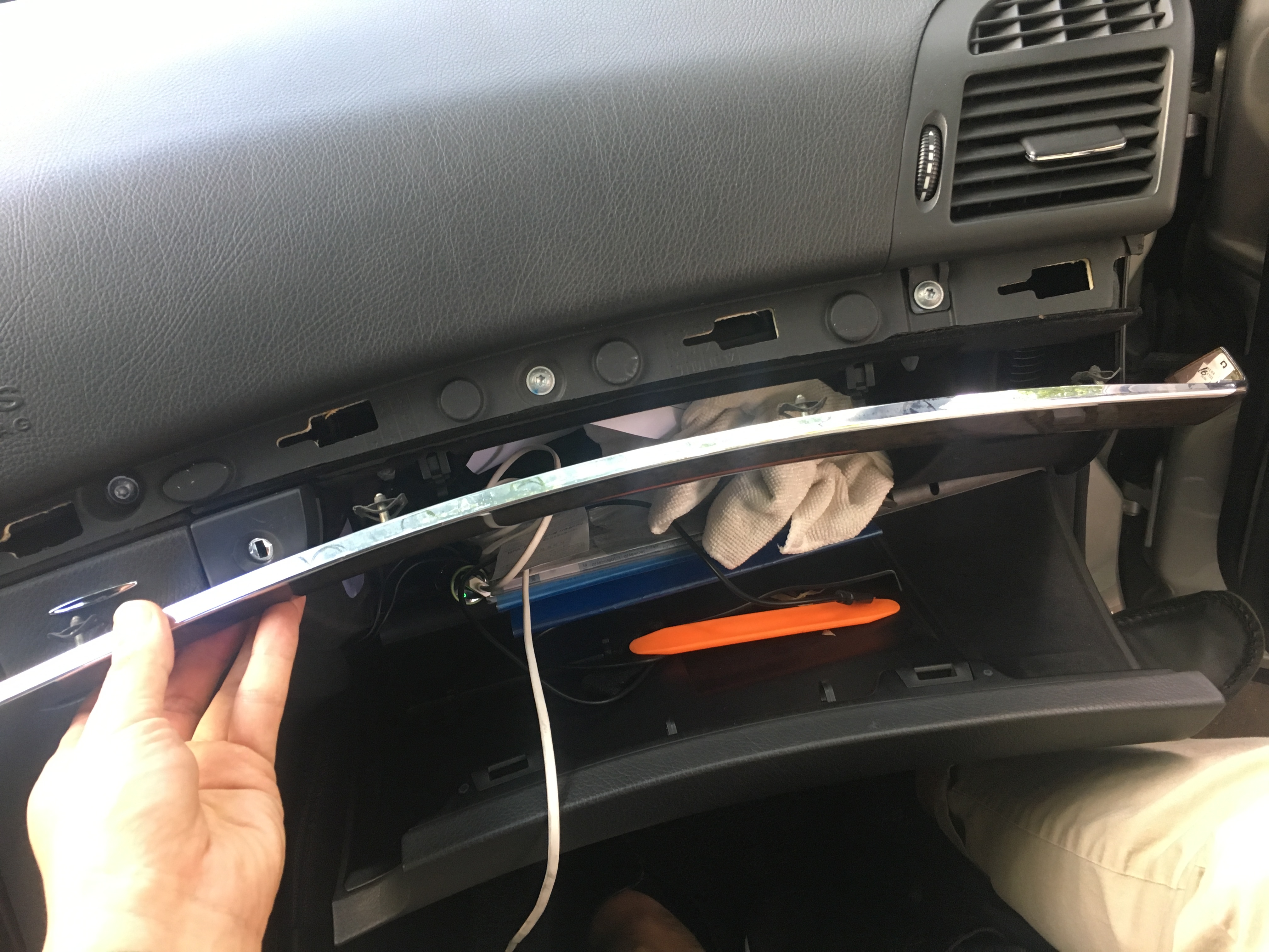 저 글로브박스 상단에 있는 우드트림을 뜯고, 전선을 안보이게 우드트림 안쪽으로 넣어보고자 합니다.