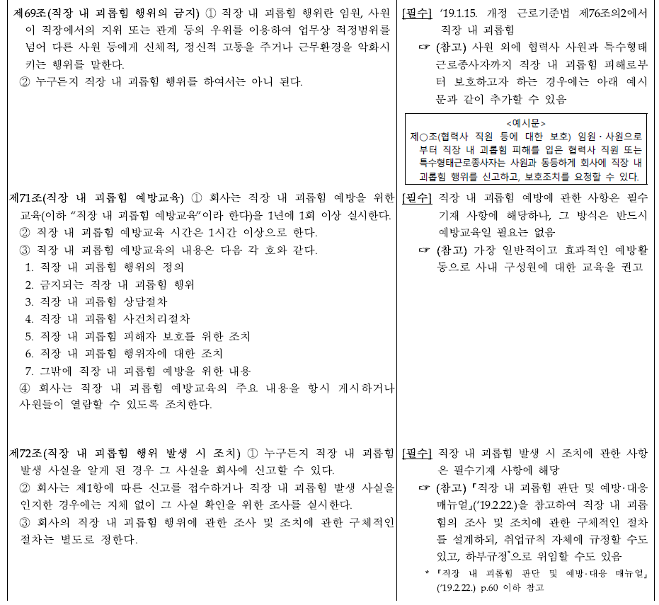 3. 직장내 괴롭힘 금지 및 발생 관련 규정 : 의무 사항으로 실설해야 하며, 관련 교육 진행 필요 |