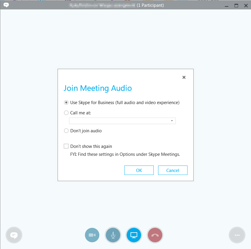 4) 링크가 제대로 스카이프 프로그램에 연결이 된다면, 아래와 같이 안내창이 나오며, Full Audio and Video가 되는 설정으로 클릭을 하면 됩니다.