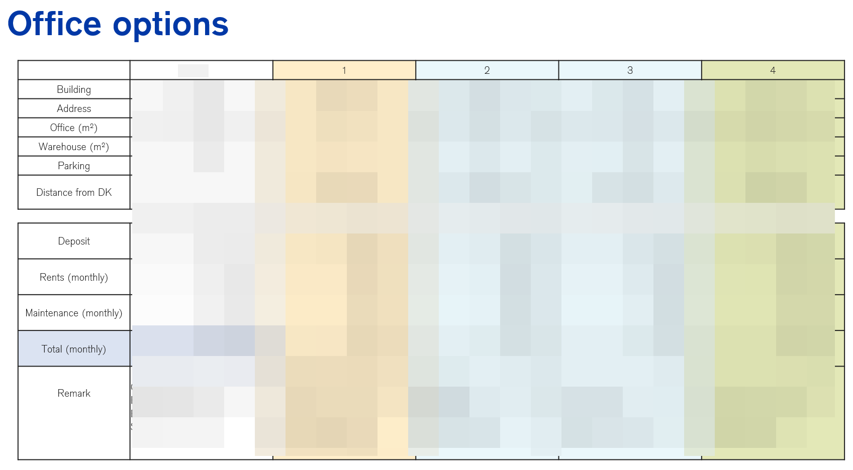 저는 이렇게 회사 이전이 결정된 후 관련 장소를 확인 및 비교 보고 하는데 약 3개월의 시간이 소요 되었습니다.