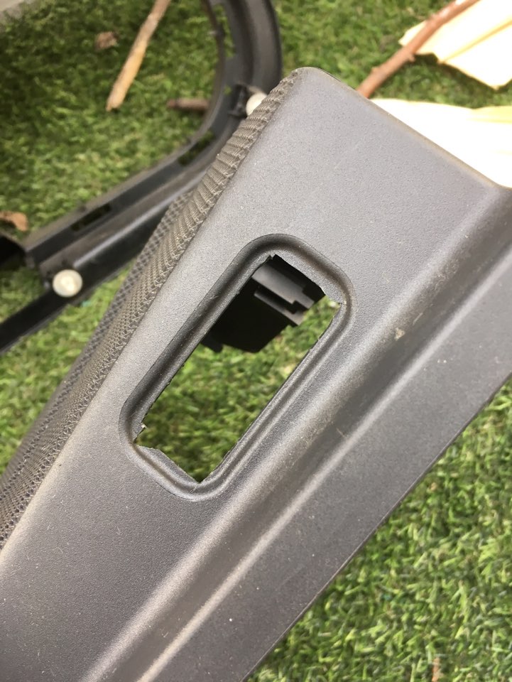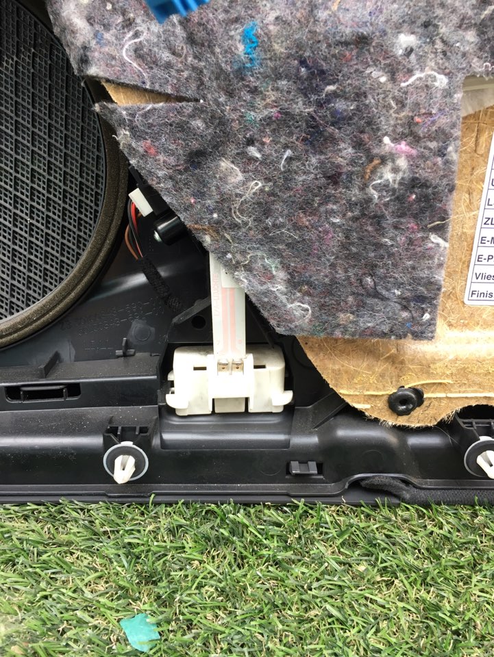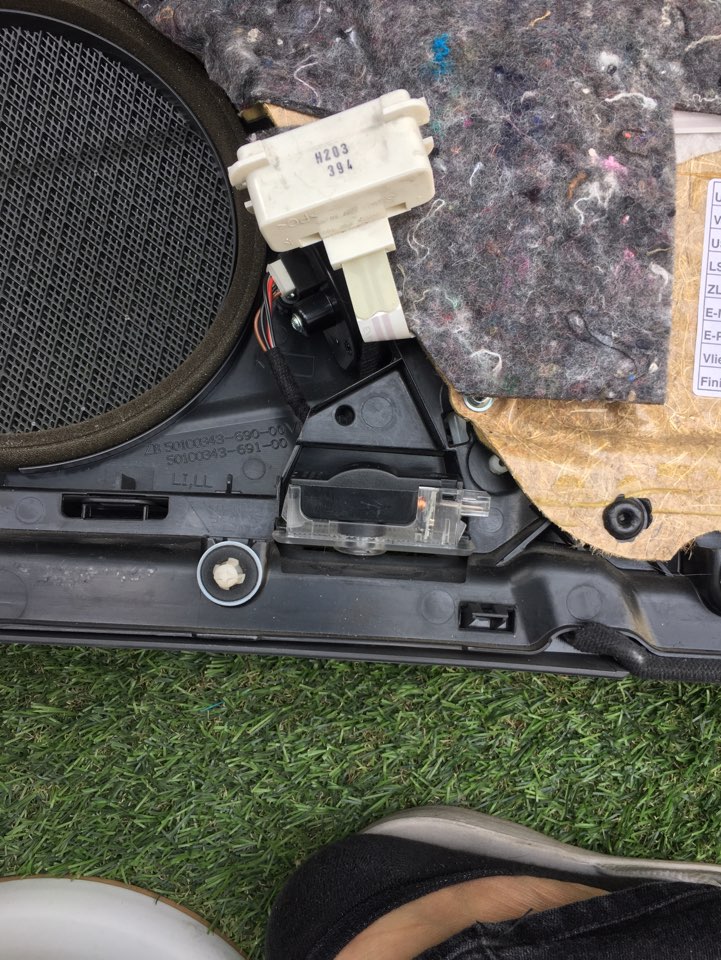 20) 스피커 커버를 분리 했을 때, 문 아래쪽에서 보이는 부분 입니다. 기존의 도어라이트가 살짝 걸려 있던 부분인데, 이 부분이 새로운 도어라이트의 연결단자 부분과 걸리게 됩니다. 아래쪽 부분은 이미 잘라낸 부분이고, 사진의 위쪽도 잘라 냈습니다.