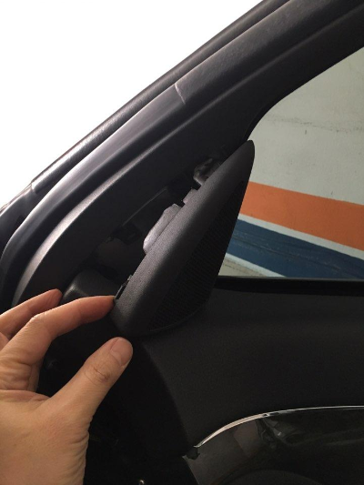1) 우선 트윗 스피커가 있는 부분을 차량 앞쪽에서부터 당겨 뺍니다. 트윗 선은 따로 분리할 필요는 없습니다.
