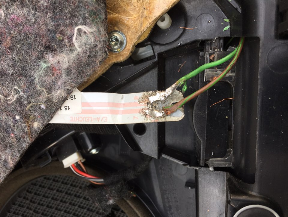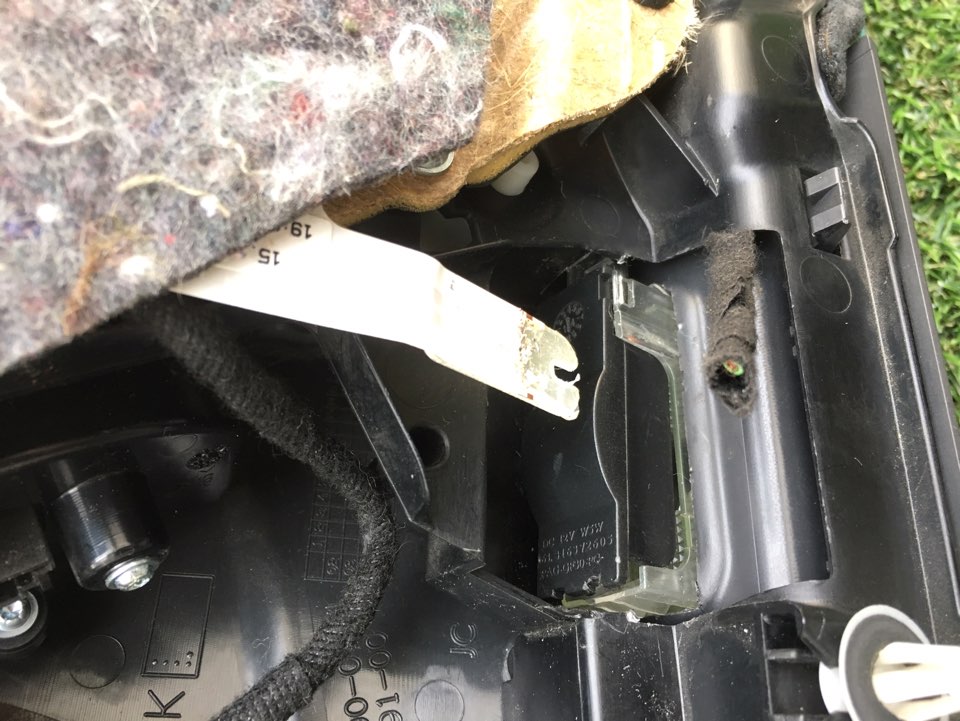 21) 마침내 사진과 같이 새로운 도어라이트가 결합 되었습니다. 이제는 처참히 분리된 필름전선의 부분과 새 도어라이트와 연결된 전선 부분을 연결해줄 차례 입니다. 도어라이트 쪽의 전선 길이가 짧아서 정말 어려웠는데, 만약 이 전선을 구한다면 길이를 여유있게 해두고 작업하시길 추천 드립니다.
