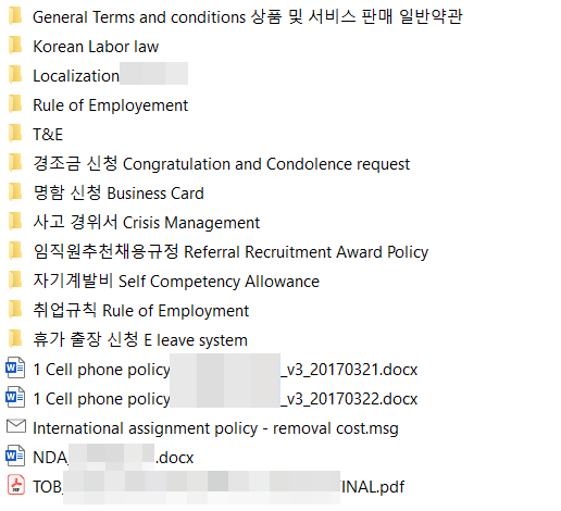 위 사진 중 오른쪽의 'old till 2019'는 회사의 시스템이 바뀌면서 더 이상 필요가 없는 자료들입니다. 다만 후에 참고로 이전 자료를 확인할 필요가 있을 것 같아 저렇게 시기로 폴더를 설정해 예전 자료를 다 저장 했습니다.