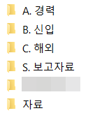 채용의 경우, 채용 폴더 안에 연간 폴더 생성, 각 년도에 진행된 채용 포지션별 폴더로 정리 했습니다.