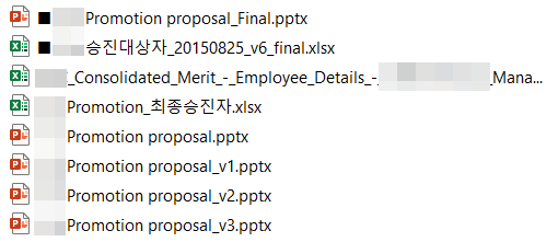 업무를 진행하다 다른 분들의 컴퓨터 파일 내역을 보면, 다양한 방법의 파일 관리법을 관찰하게 됩니다.