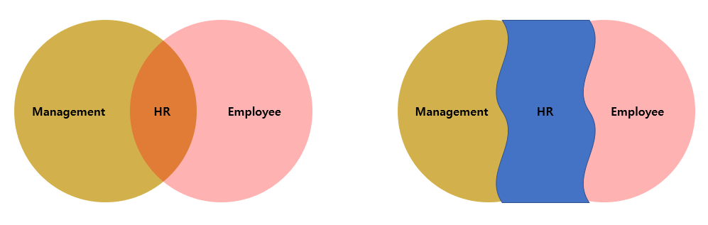노조나 노사협의회가 있다 할지라도, 인사담당자는 경영자 측의 소속으로 간주 되는 경우가 많습니다. 회사의 주요 기밀 경영 정보 및 결정 사항 등 필수적인 정보를 접할 수 밖에 없는 부서이기 때문입니다. 그러다 보니, 직원으로서 급여를 받고 업무를 하는 입장임에도 회사의 결정을 직원들에게 전달 및 설득하는 경영자를 대변하는 입장이기도 합니다.