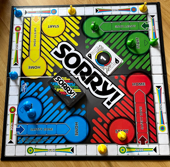 < Sorry! : 쏘리, 카드를 뒤집어 보드 위의 개인 말을 상대방 보다 빨리 이동시키는 게임 >
