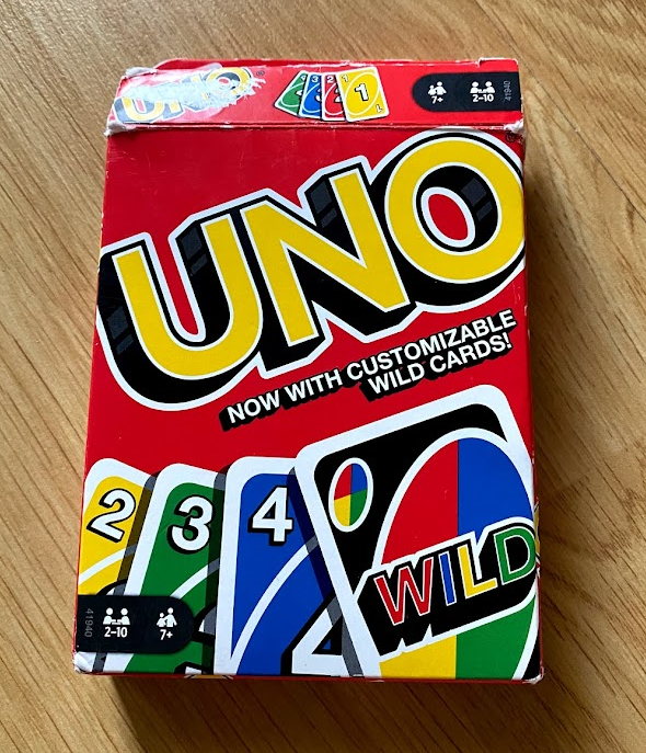 어릴 적 원카드라는 명칭으로 했던 게임 방식과 유사 합니다. 각자 7장의 카드를 순서대로 진행하게 되며, 바닥에 있는 카드와 같은 색이나 숫자, 혹은 특별 카드 사용이 가능 합니다. 플레이 방향을 바꾼다던지, 색상 변경, 다음 순서 금지, 혹은 상대방이 2장, 4장의 카드를 더 가져가야 하는 등의 특별 카드가 있으며, 전략적으로 상대방의 카드 또한 추측이 가능 합니다. 마지막 2번째 장 소진 시에는 "우노!"라고 외치며 카드를 내려놔야 하고, 그 이후 마지막 카드를 소진하게 되는 사람이 이기는 게임 입니다. 운도 많이 작용하다 보니, 아이도 자주 이길 수 있는 즐거운 게임 입니다.