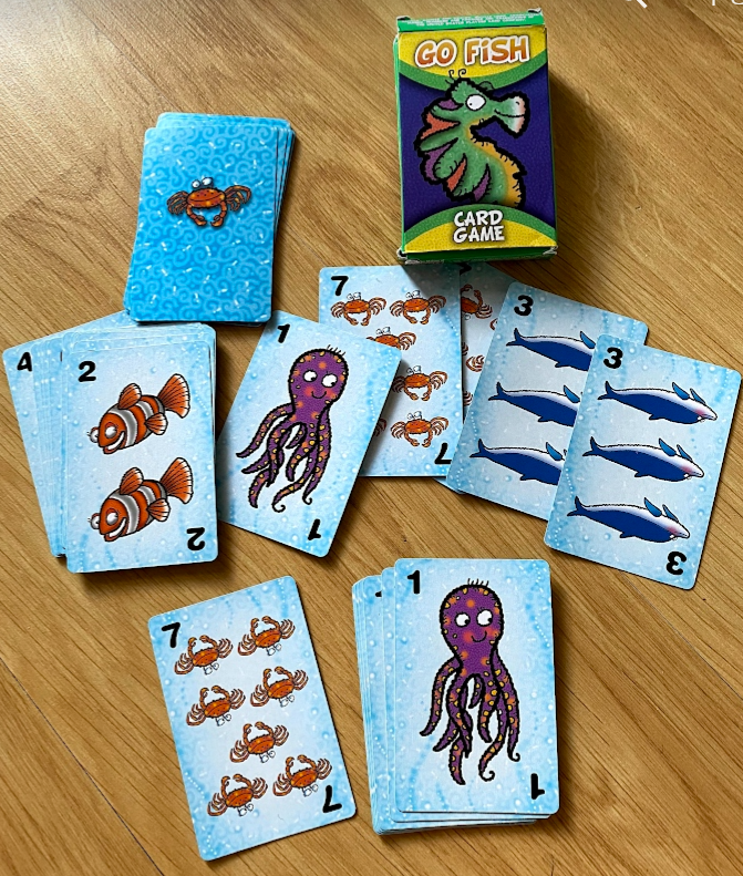 서로 일정 수의 카드를 들고 상대방에게 필요한 카드를 찾아서 먼저 카드를 다 소진하면 이기는 게임 입니다. 짝을 맞춰야 하는 카드를 상대방에게 물어보고 상대방이 가지고 있다면 짝이 맞춰진 카드는 바닥에 내려놓습니다. 원하는 카드를 상대방이 가지고 있지 않다면, 벌칙으로 카드덱에서 한 장을 더 집어야 하고, 짝을 맞춰 모든 카드를 소진하는 사람이 이기는 게임 입니다. 아이와 함께 즐겼던 거의 최초의 카드 게임이었습니다.