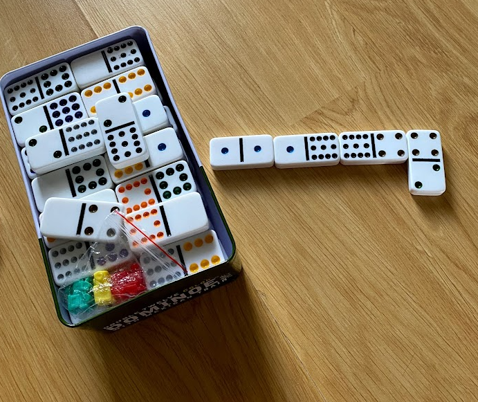 각자 7개의 도미노를 가지고 게임을 시작하고, 양쪽 숫자가 같은 도미노로 게임을 시작 합니다. 오른쪽의 1개 점이 있는 도미노가 먼저 시작 됬다면 1의 숫자가 있는 도미노를 연결 가능하고, 만약 가능한 도미노가 없다면 뒤집혀 있는 도미노에서 추가로 1개를 가지고 옵니다. 그런 식으로 계속 연결해 나가면서 본인 도미노를 빨리 소진하는 게임 입니다. 본인이 양쪽 숫자가 같은 도미노를 가지고 있다면 전략적으로 상대방이 플레이를 못하도록 할 수 있으며, 블럭으로 진행하는 게임이다 보니 카드나 보드 게임과는 또 다른 즐거움을 줍니다. 여지껏 도미노는 세워서 쓰러뜨리는 것만 알고 있었는데, 이 게임은 다양한 게임 방식 중 하나인 것으로 알고 있습니다.
