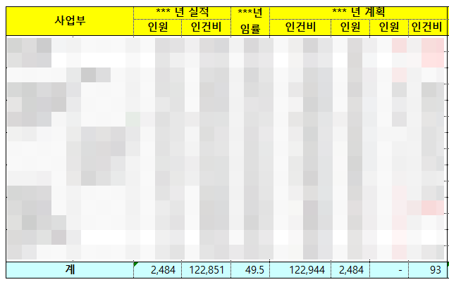 참고로, 인건비만을 따로 관리하는 인사팀 부서에서는, 아래와 같이 예산을 정리하곤 했습니다.